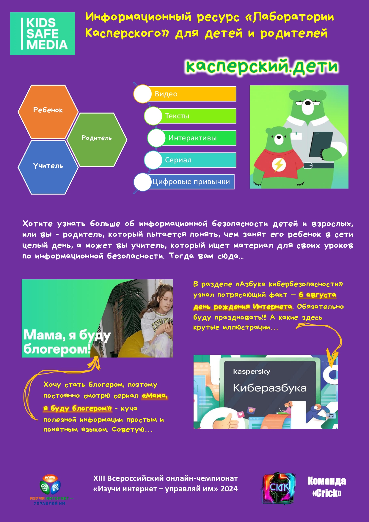 Мой любимый сайт в домене .ДЕТИ: инфографики участников XIII Всероссийского онлайн-чемпионата «Изучи интернет – управляй им», 2024